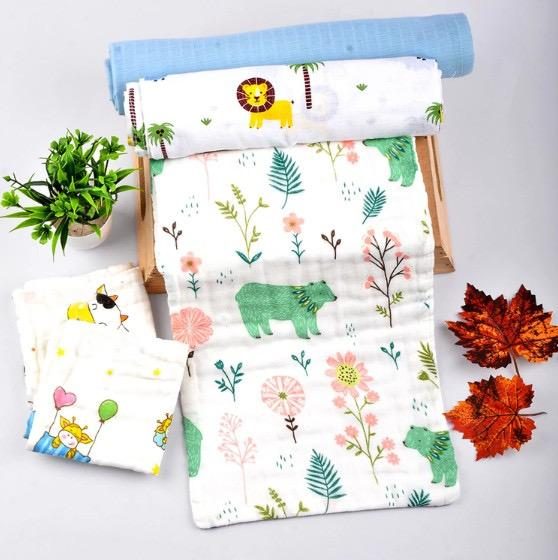 Baby Unisex Muslin Organic cotton 1 Muslin swaddle, 1Burp Towel, 2 Napkins and 1 Square Nappy combo