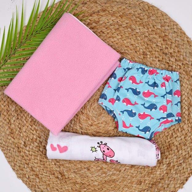 Be the first to review “Baby Unisex Nappy Combo 1 Dry Sheet, 1 Swaddle, 1 Padded Underwear | 0- 12 Months | Multicolor” Cancel reply