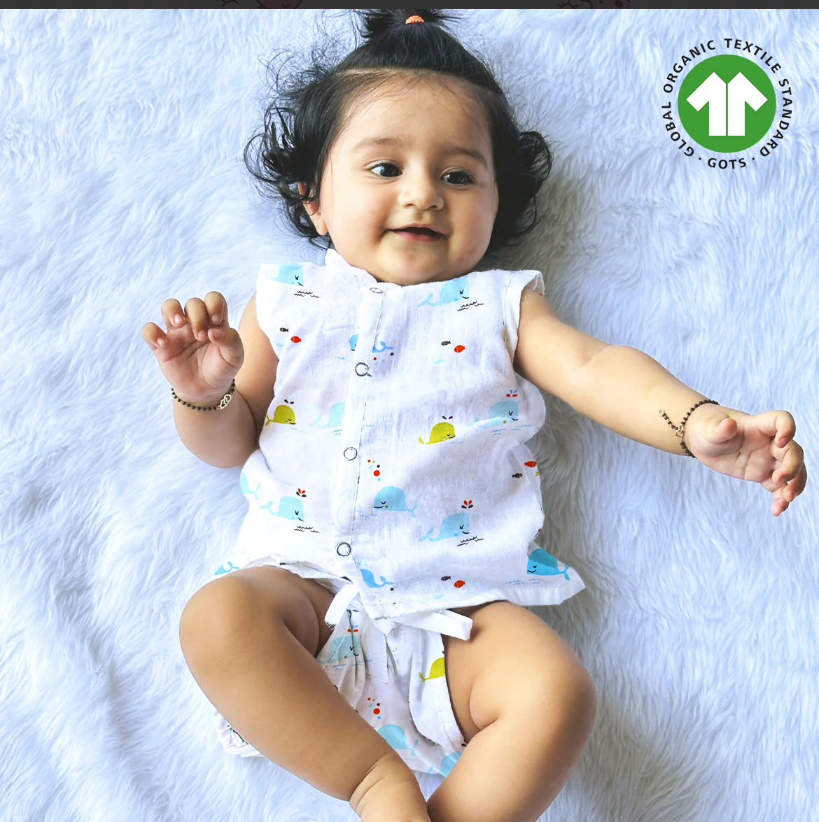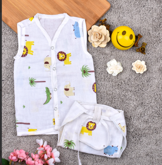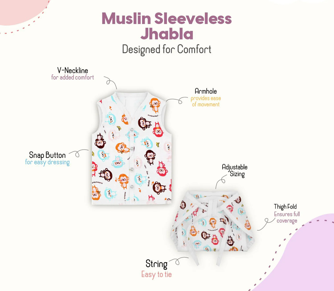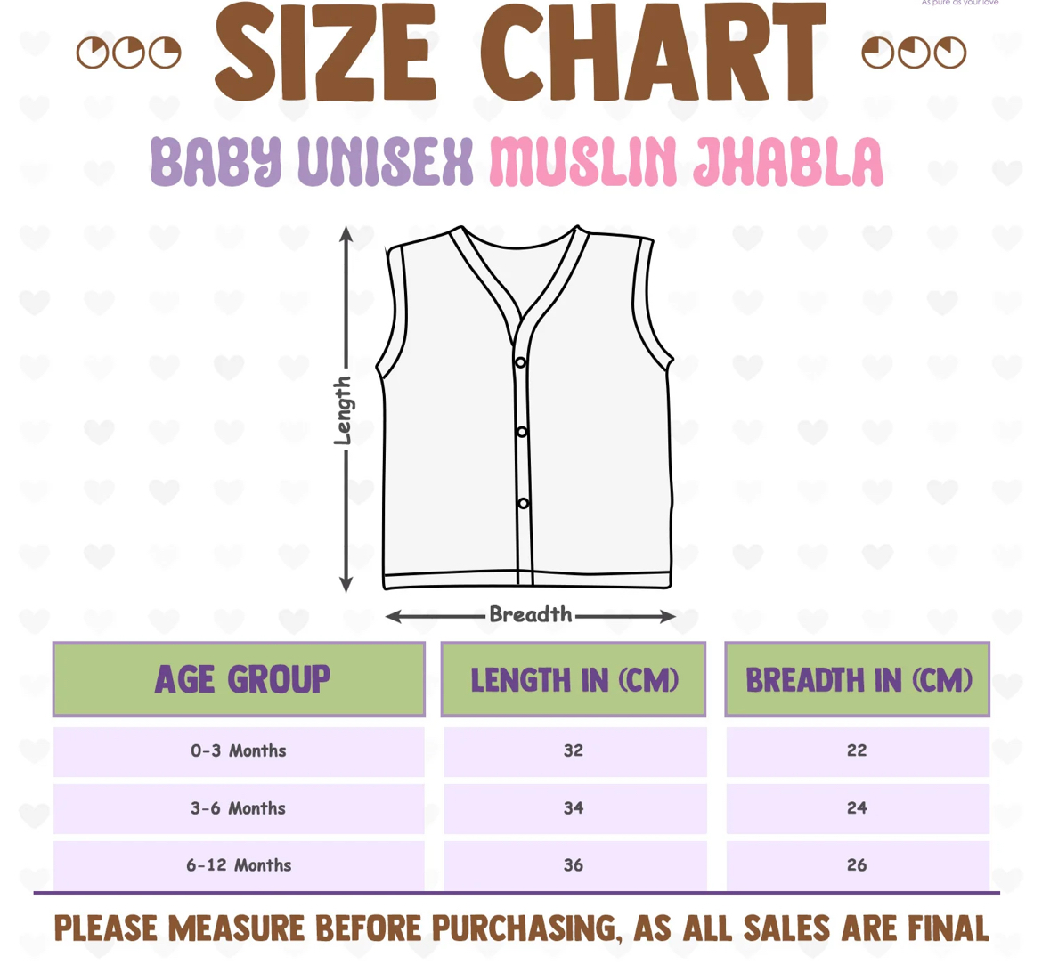 Wrap your little one in pure comfort with this Jhabla and Nappy set, crafted from super-soft, breathable muslin fabric. Gentle as a feather on your baby’s delicate skin, it makes the perfect very-first clothing choice. The best part? It gets even softer with every wash, making it ideal for both everyday wear and cozy sleepwear.